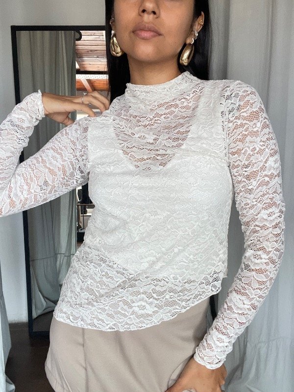 polera de encaje con lentejuelas bordadas