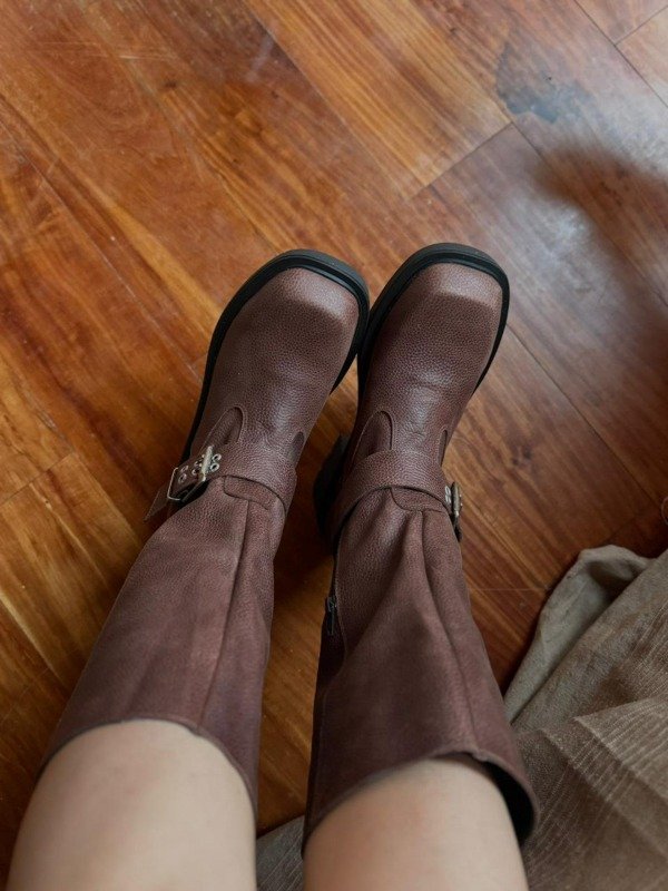 Borcegos caña media. Con detalle de hebilla lateral. Punta cuadrada
