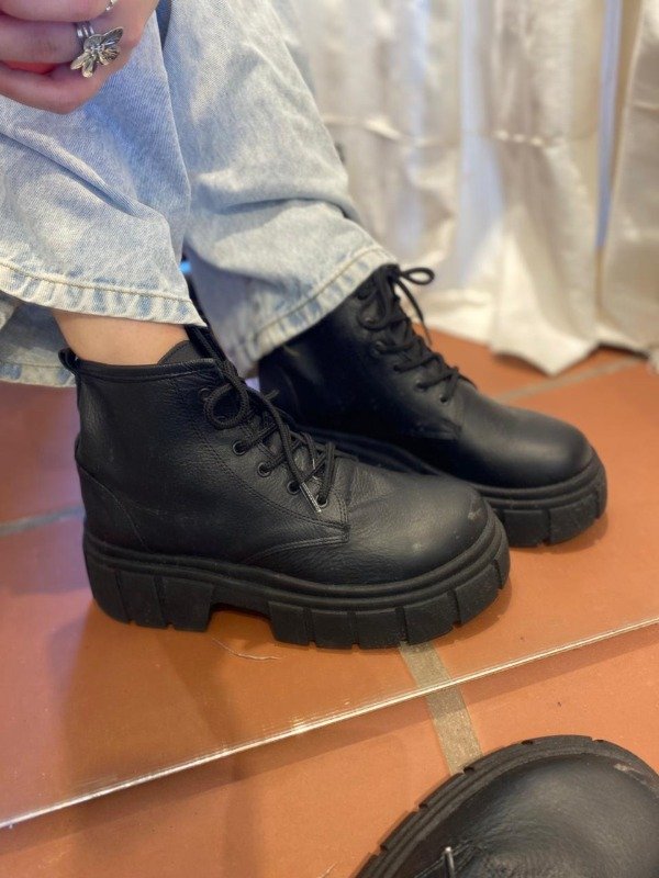 Borcegos caña baja, confeccionados 100% cuero vacuno. Con cordones.