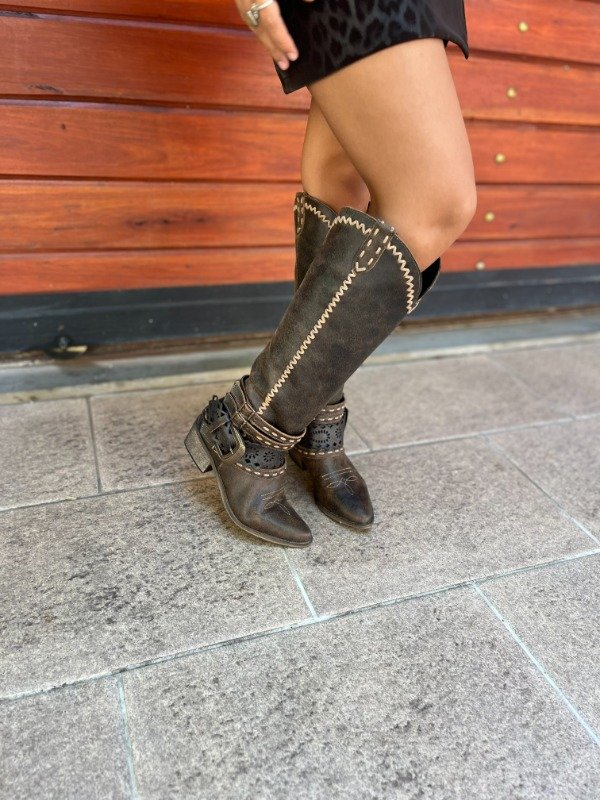 Nuestro diseño exclusivo confeccionado en cuero vacuno de alta calidad 🤎 Con acabado levemente envejecido, costuras artesanales y detalle de faja calada con hebilla estilo vintage que le aporta ese toque boho western único.