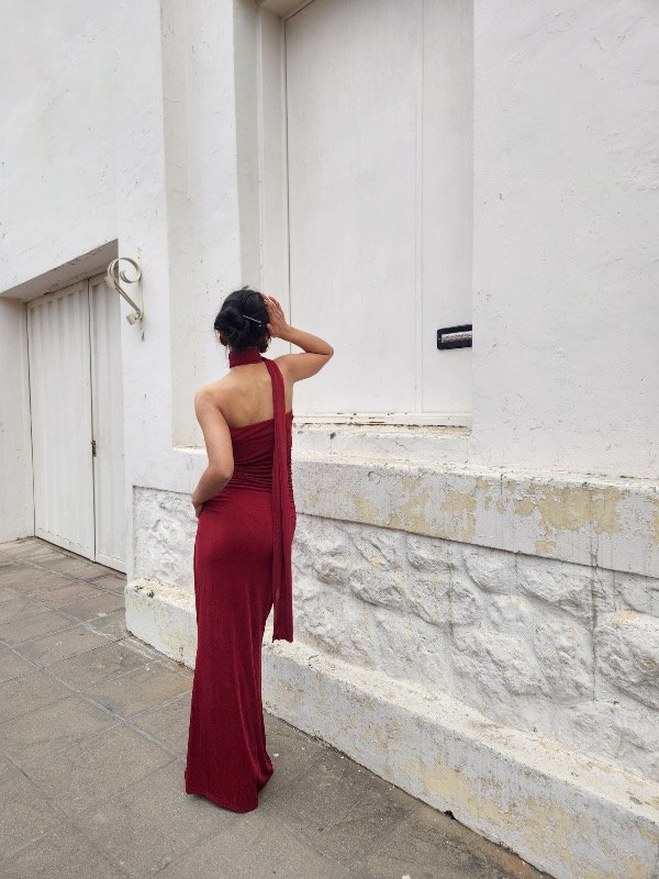 Vestido largo confeccionado con varias capas de microtul, con forro interno y lazo