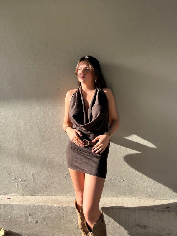 Confeccionado en materiales de alta calidad, el vestido ofrece un calce cómodo que se adapta a tu cuerpo sin perder forma. Su tono marrón cálido es perfecto para combinar con accesorios neutros o coloridos, creando looks únicos y auténticos.